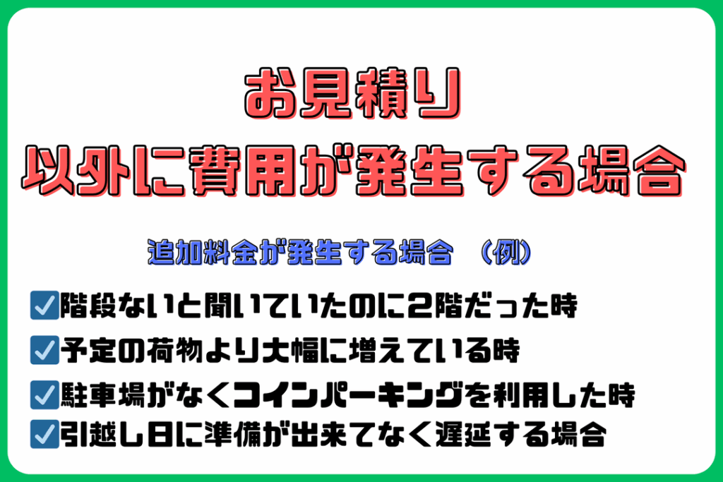 ➃引っ越し準備をしてなく遅延する場合は、キャンセルとなる場合があります。
